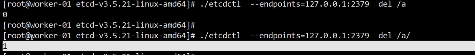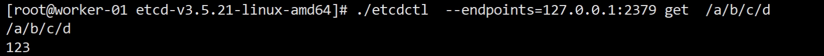 ./etcdctl --endpoints=localhost:2379 get --prefix /a