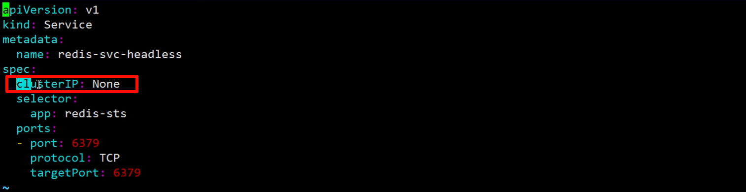 #写 Service 对象的时候要小心一些,metadata.name 必须和 StatefulSet 里的 serviceName 相同,selector 里的标签也必须和 StatefulSet 里的一致: